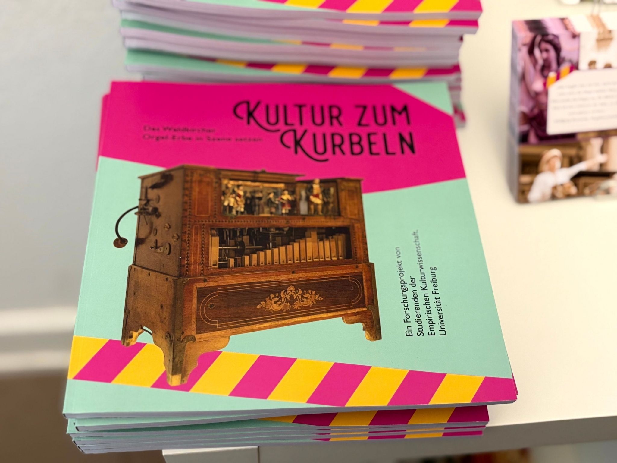 Mit Orgelmusik – wie könnte es in Waldkirch auch anders sein – wurde die Vernissage von „Kultur zum Kurbeln – Das Waldkircher Orgel-Erbe in Szene gesetzt“ eröffnet. Zwei Semester hatten neun Studierende der Empirischen Kulturwissenschaft der Universität Freiburg zum Waldkircher Orgelerbe geforscht. Sie sichteten Akten im Stadtarchiv, sprachen mit Orgelbauern und Drehorgelspielerinnen und tauchten tief in die Geschichte des Orgelbaus ein. Die Ergebnisse ihrer Forschung präsentieren sie nun in einer Publikation und in einer Ausstellung, die noch bis Dienstag, 30. September, im Elztalmuseum zu sehen ist.
