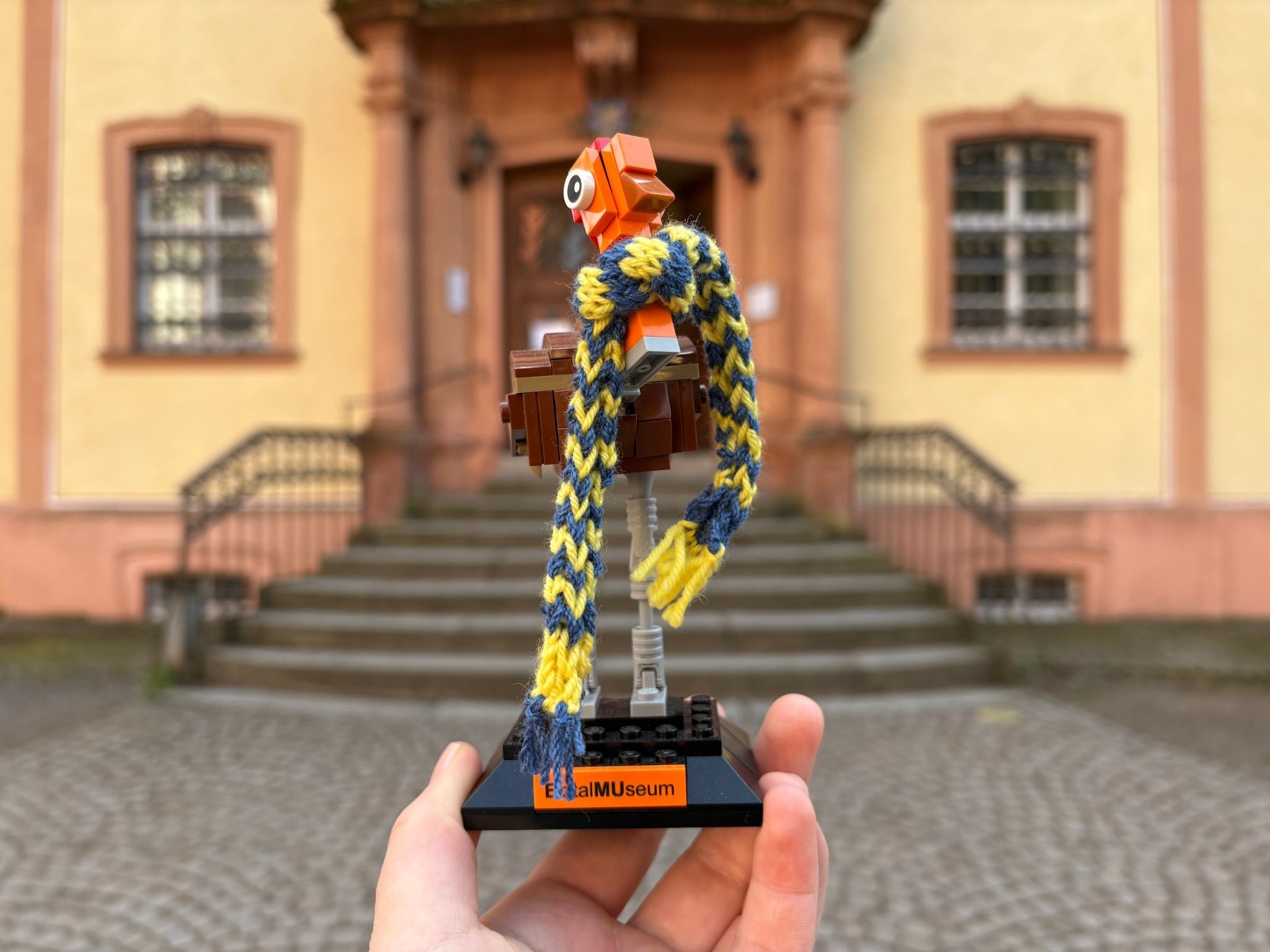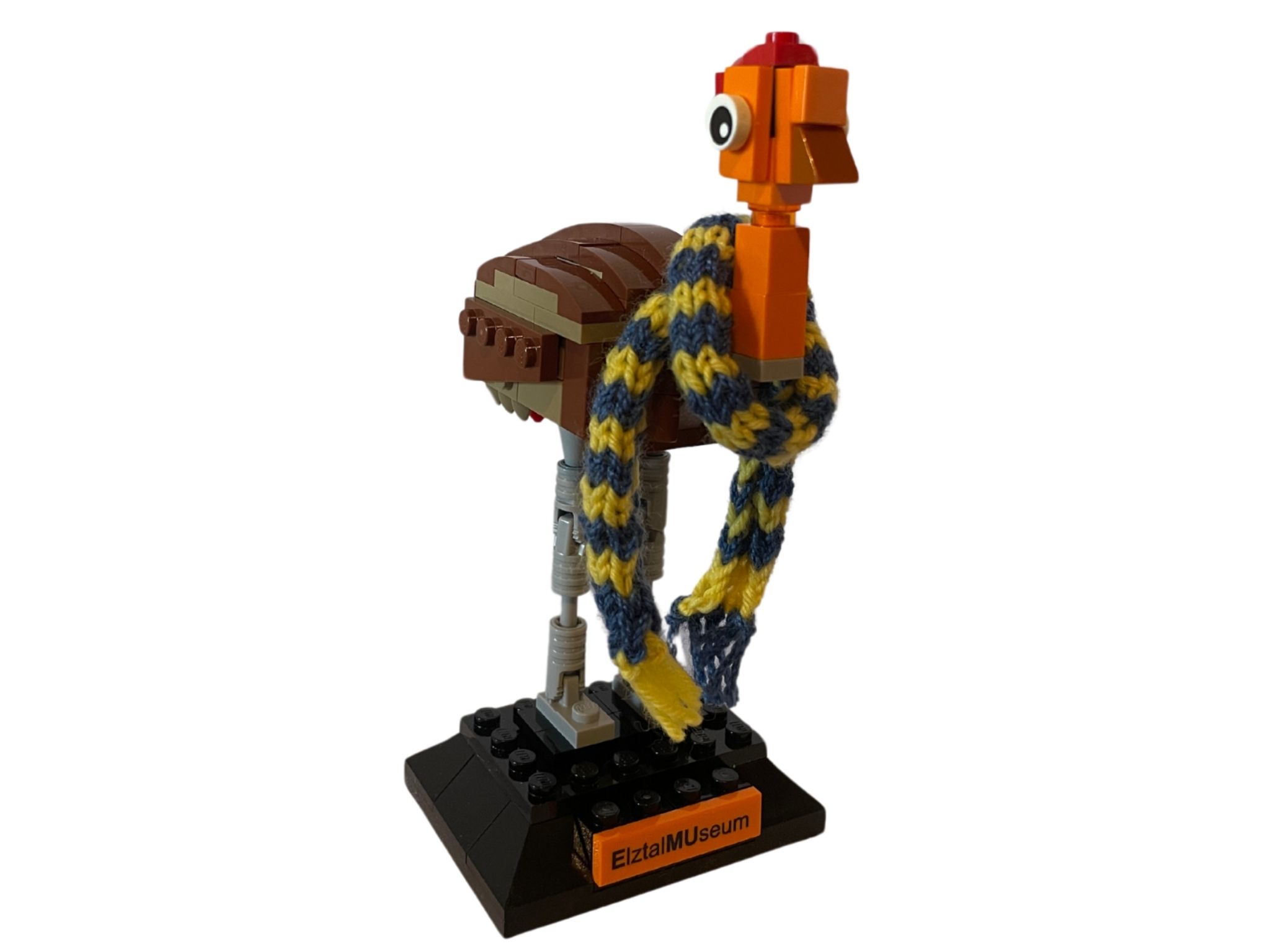 Zur Sonderausstellung „Weihnachtsmann & Co. – Winterliche LEGO®-Welten“ (1.12.2024–26.1.2025) entstand die Idee, auch unser Maskottchen Emu als LEGO®-Figur anzubieten. Fündig wurden wir – natürlich – in Australien, der Heimat des Laufvogels! Der Designer Shamir Muhammad entwarf die Anleitung, inspiriert von australischen Symboltieren wie Känguru und Koala. Mit etwas Farbe fürs Kopfgefieder und einem gestrickten gelb-blauen Schal – eigens für das Elztalmuseum gefertigt – wurde daraus unser ganz persönlicher kleiner LEGO®-Emu.